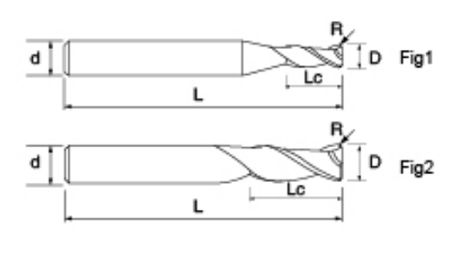| خیر | قطر D | زاویه آر R | طول فلوت ال سی | طول کلی L | شانک دیا د | شمارش تیغه اف |