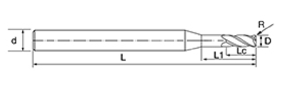 | سری ابزار | قطر | شعاع | شعاع گوشه | طول فلوت | طول موثر | طول کلی | شانک دیا | |||