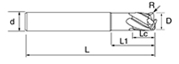 | خیر | قطر D | زاویه آر R | طول فلوت ال سی | طول موثر L1 | طول کلی L | شانک دیا د | شمارش تیغه اف |