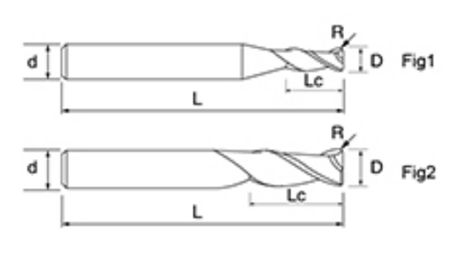 | خیر | قطر D | زاویه آر R | طول فلوت ال سی | طول کلی L | شانک دیا د | شمارش تیغه اف |